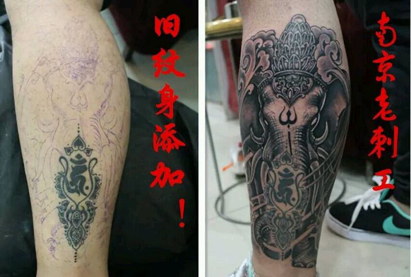 当前位置: 首页 >江苏省南京市纹身店-南京谢志-刺青 Tattoo纹身图案>象神纹身图片_腿部传统动物原创成品纹身图案
