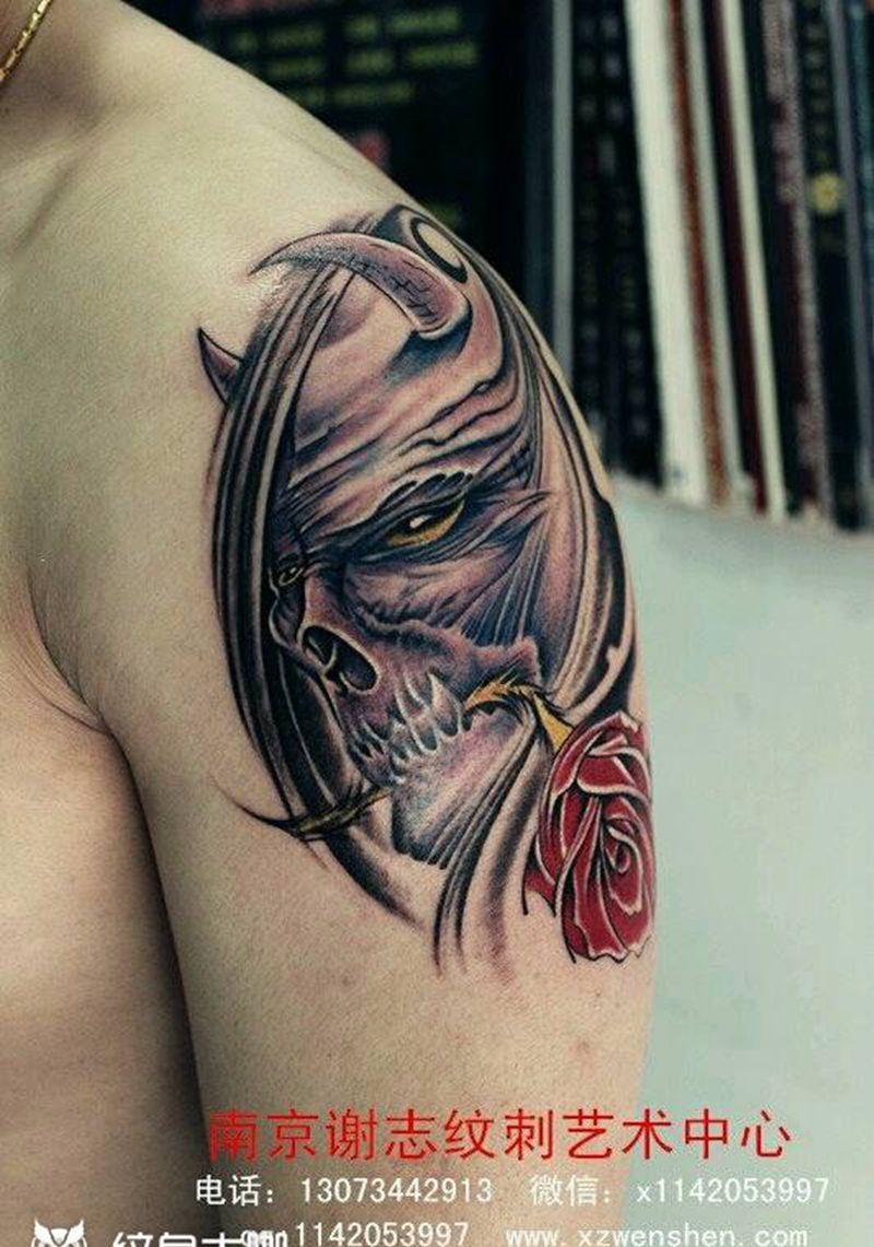 • 纹身吧推荐的披肩图腾半胛纹身图案作品展示