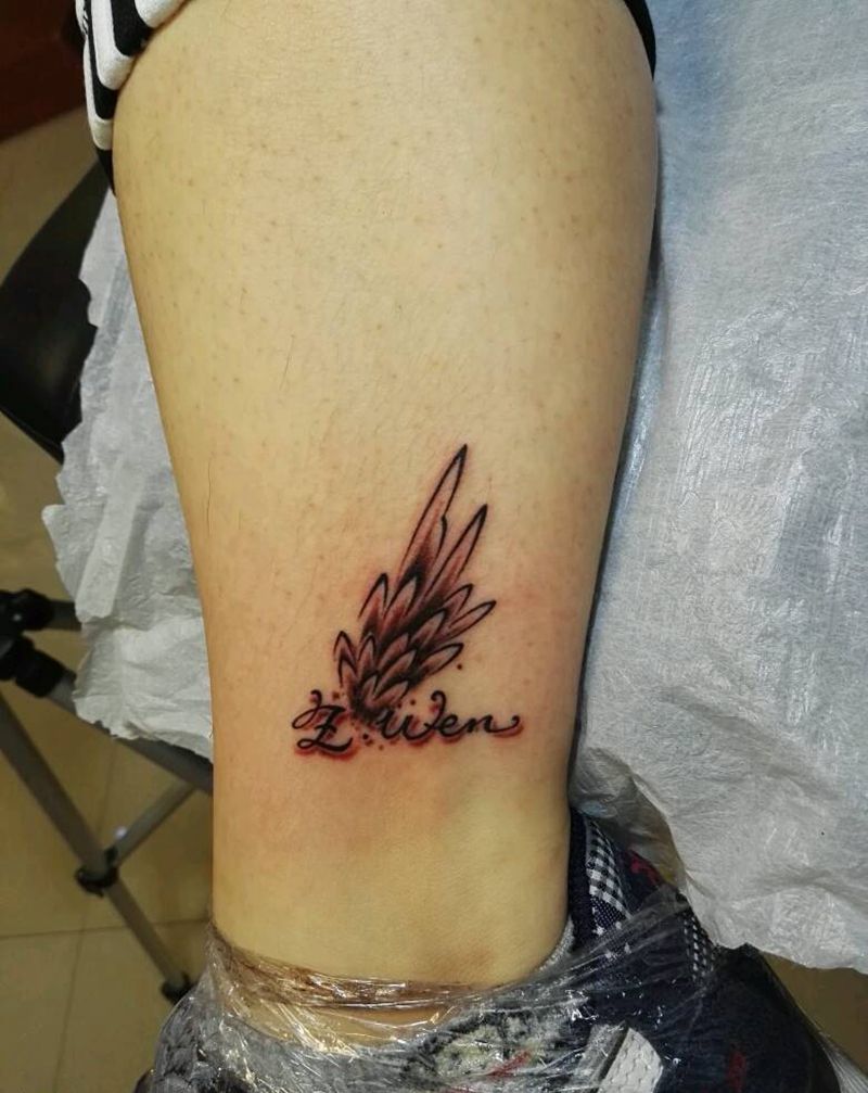 翅膀纹身图片_腿部清新字符静物原创成品纹身图案