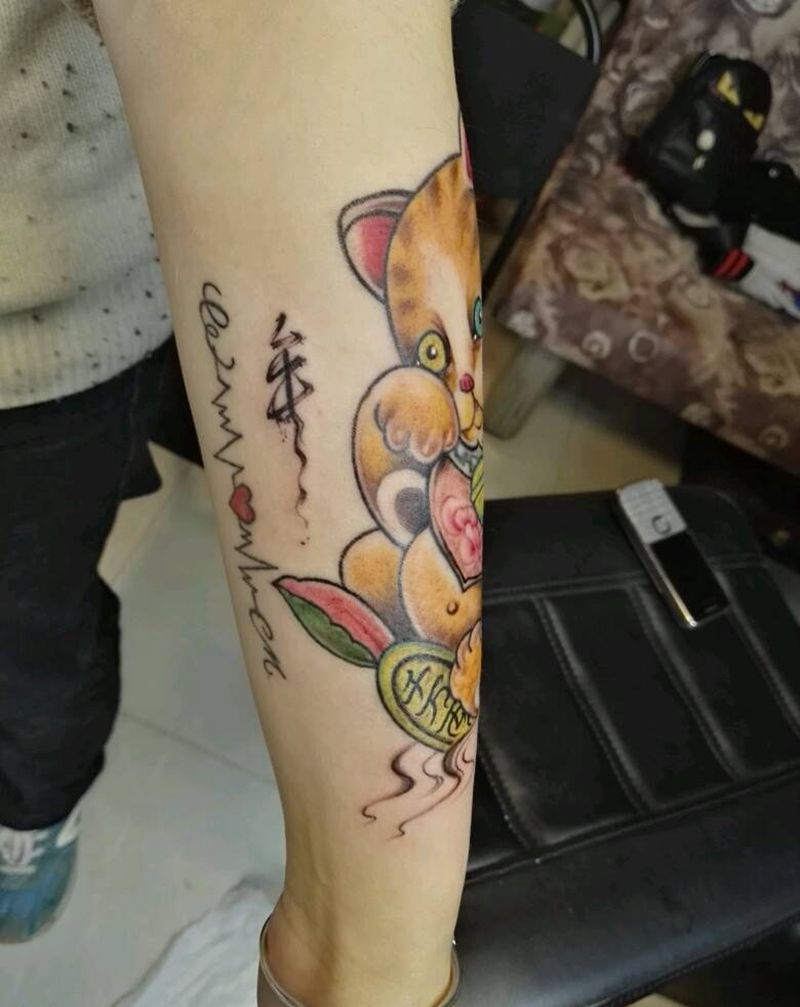 当前位置: 首页 >江苏省南京市纹身店-南京谢志-刺青 Tattoo纹身图案>招财猫纹身图片_手臂传统动物原创成品纹身图案
