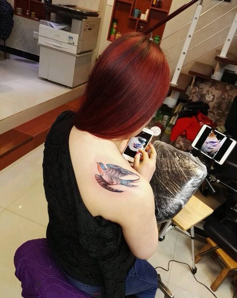 小燕子纹身图片_肩部清新动物原创成品纹身图案