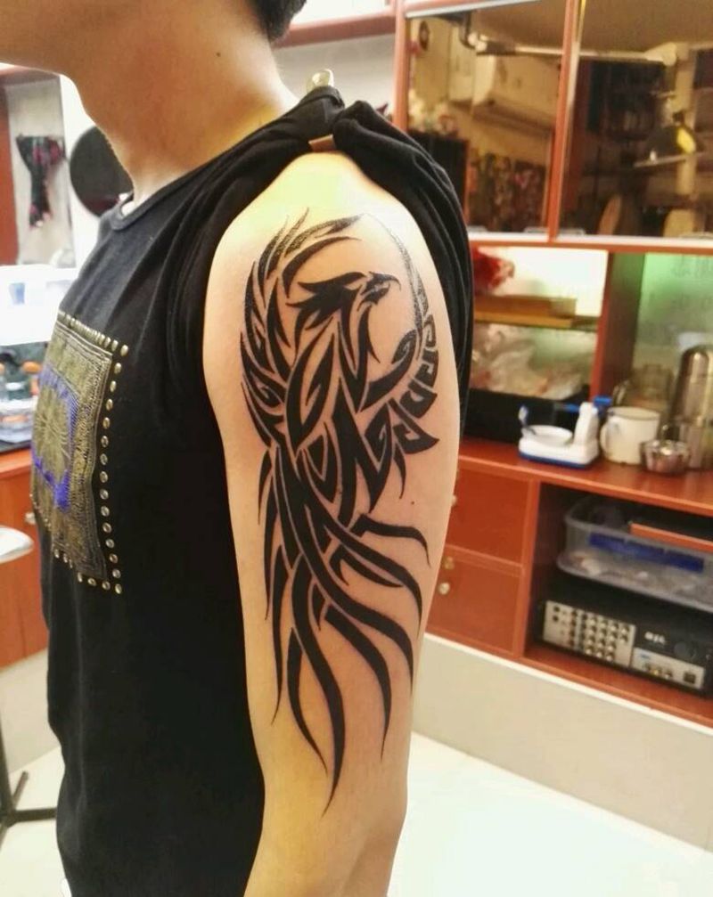 当前位置: 首页 >江苏省南京市纹身店-南京谢志-刺青 Tattoo纹身图案>凤凰纹身图片_手臂传统动物图腾原创成品纹身图案