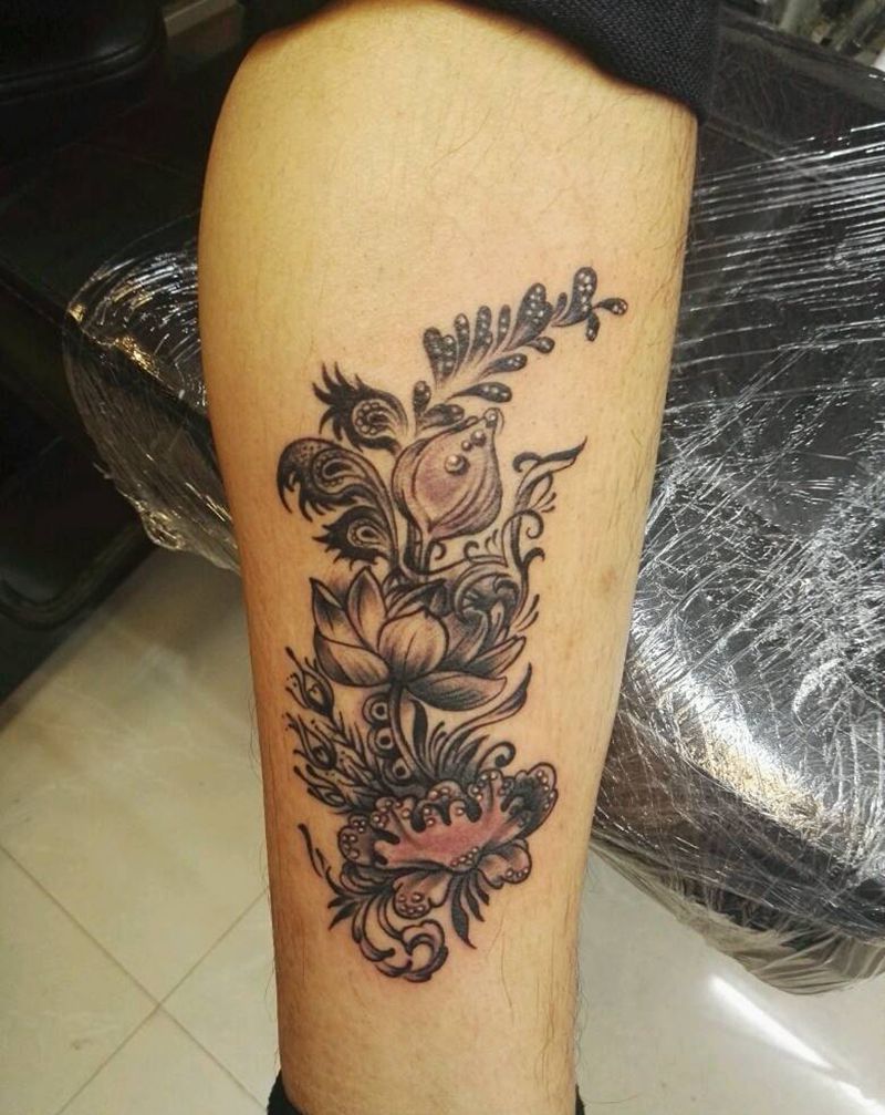 莲花纹身图片_腿部传统植物原创成品纹身图案