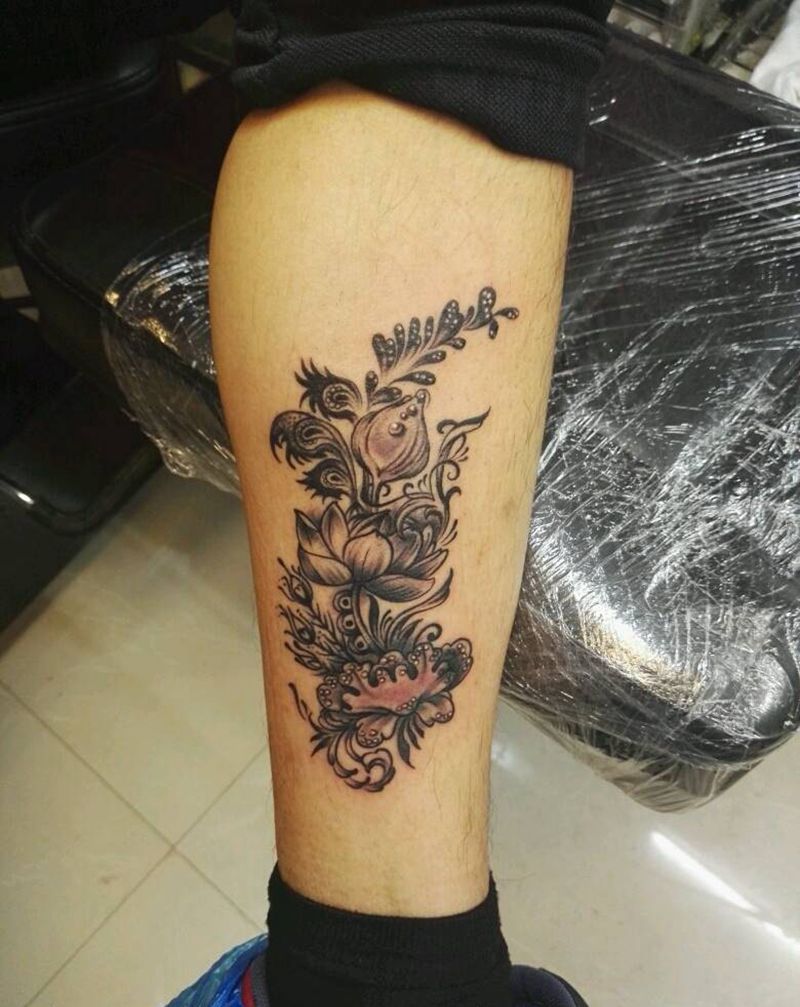 莲花纹身图片_腿部传统植物原创成品纹身图案