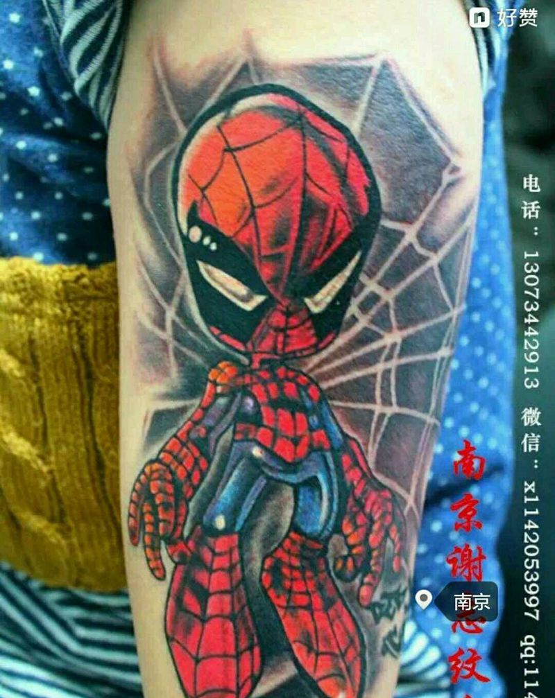 蜘蛛侠纹身图片_手臂清新人物原创成品纹身图案