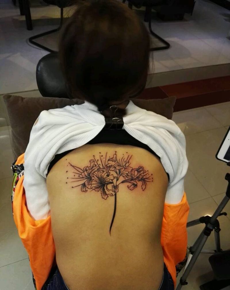 彼岸花纹身图片_背部清新植物原创成品纹身图案