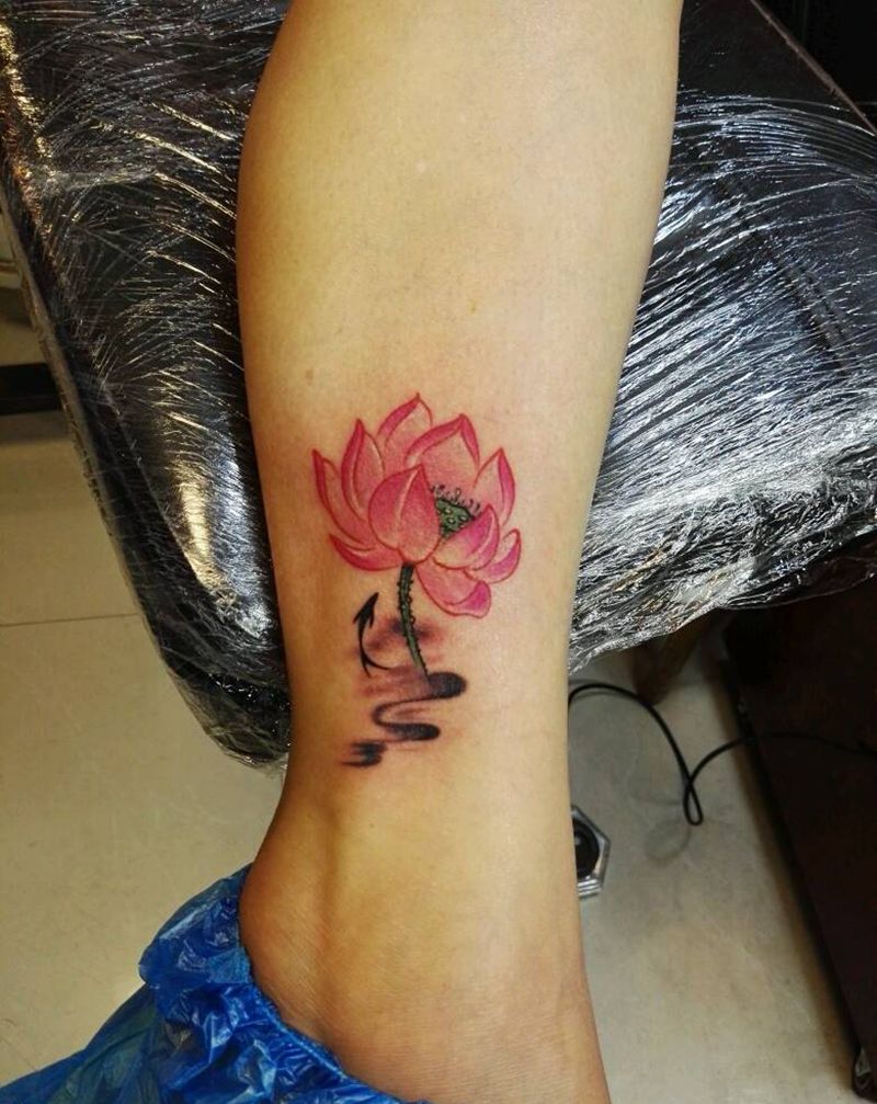 荷花纹身图片_腿部清新植物原创成品纹身图案