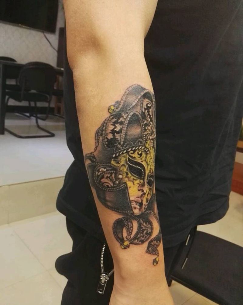 面具纹身图片_手臂写实人物原创成品纹身图案
