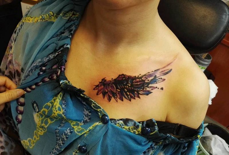 水墨翅膀纹身图片_胸部清新动物原创成品纹身图案
