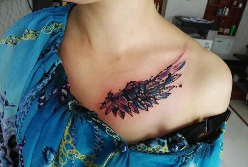 水墨翅膀纹身图片_胸部清新动物原创成品纹身图案