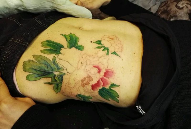 胎记遮盖纹身图片_腰部传统植物原创成品纹身图案