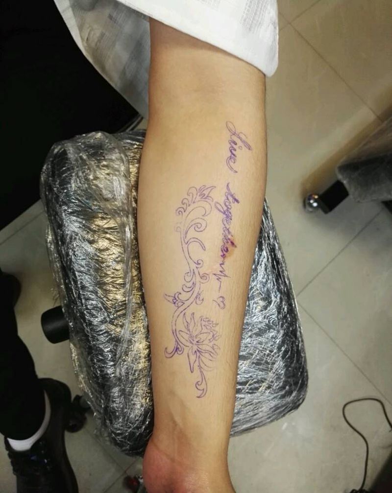 疤痕遮盖纹身图片_手臂清新字符原创成品纹身图案