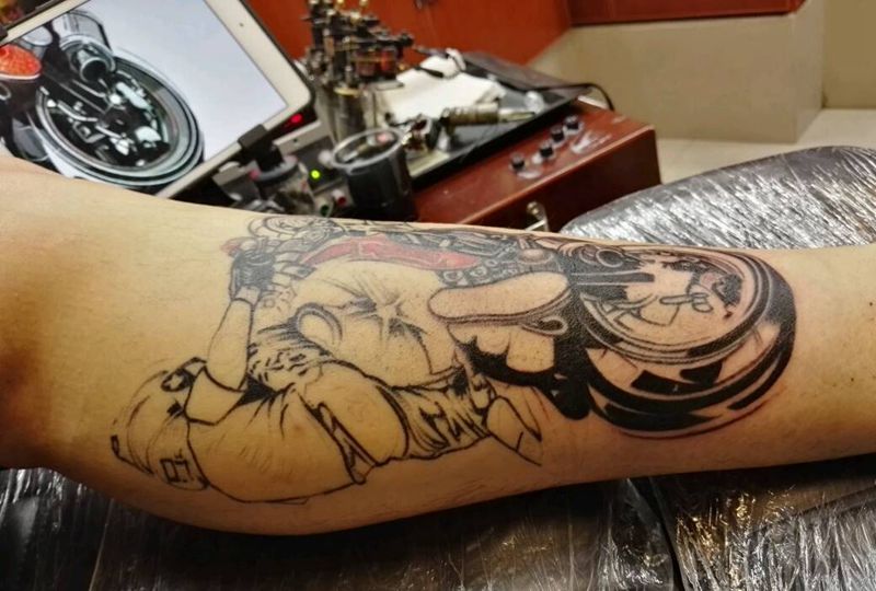 当前位置: 首页 >江苏省南京市纹身店-南京谢志-刺青 Tattoo纹身图案>摩托车纹身图片_腿部传统写实静物原创成品纹身图案