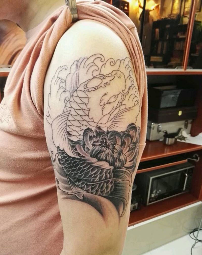 锦鲤纹身图片_手臂传统动物原创成品纹身图案