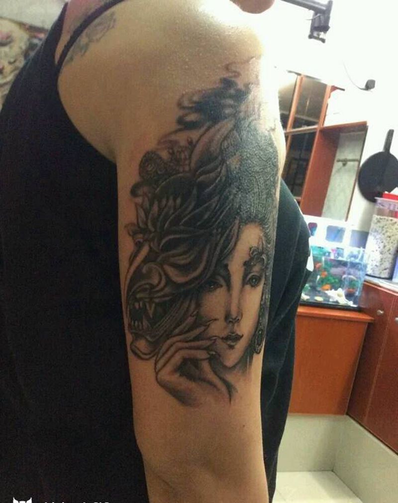 • 纹身吧推荐的披肩图腾半胛纹身图案作品展示