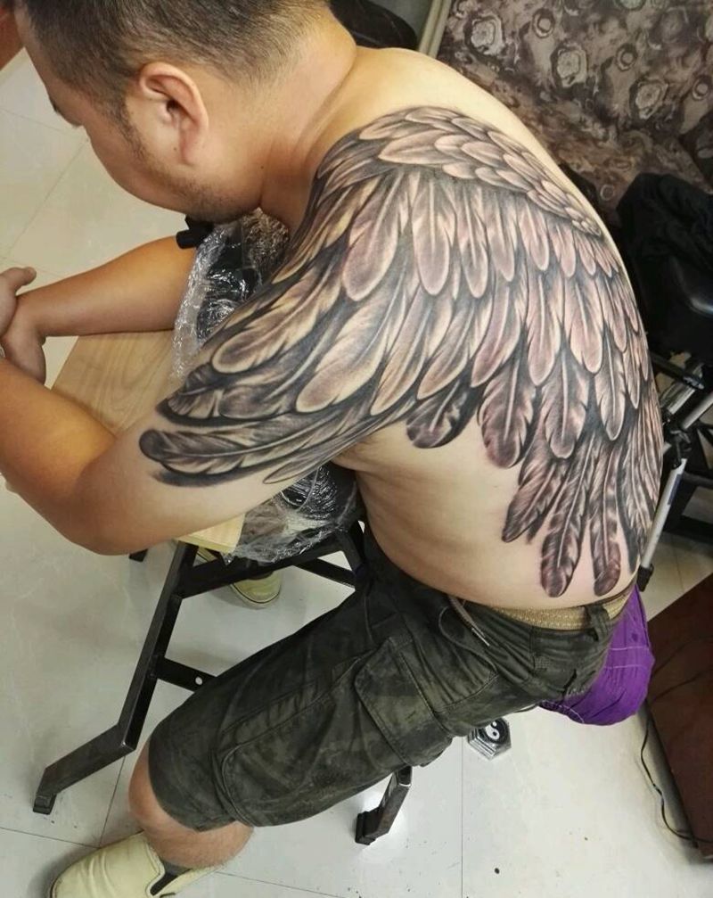 大翅膀纹身图片_背部传统原创成品纹身图案