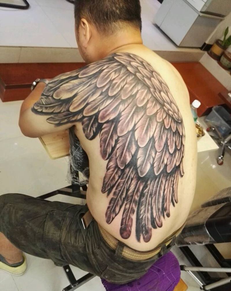 大翅膀纹身图片_背部传统原创成品纹身图案