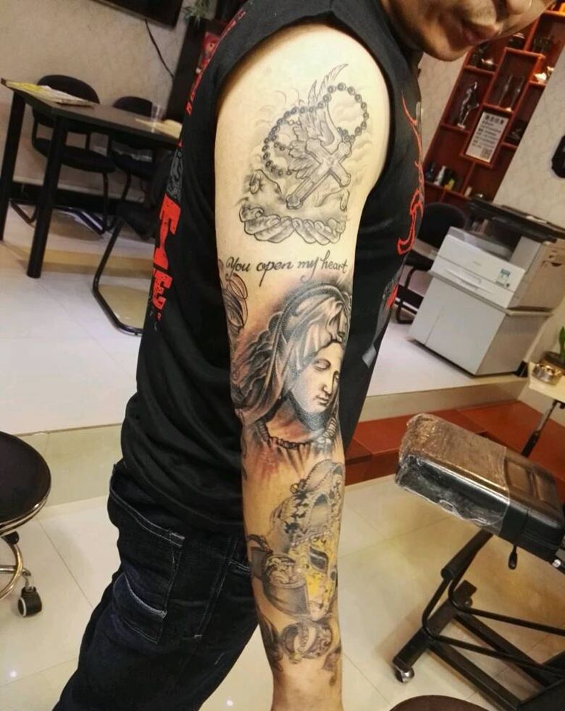 花臂未完成纹身图片_手臂欧美人物宗教原创成品纹身图案
