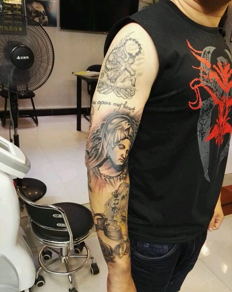 花臂未完成纹身图片_手臂欧美人物宗教原创成品纹身图案