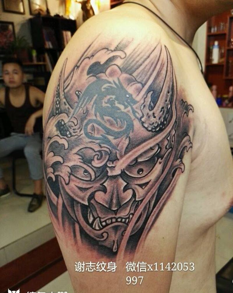 般若纹身图片_手臂传统鬼神原创成品纹身图案