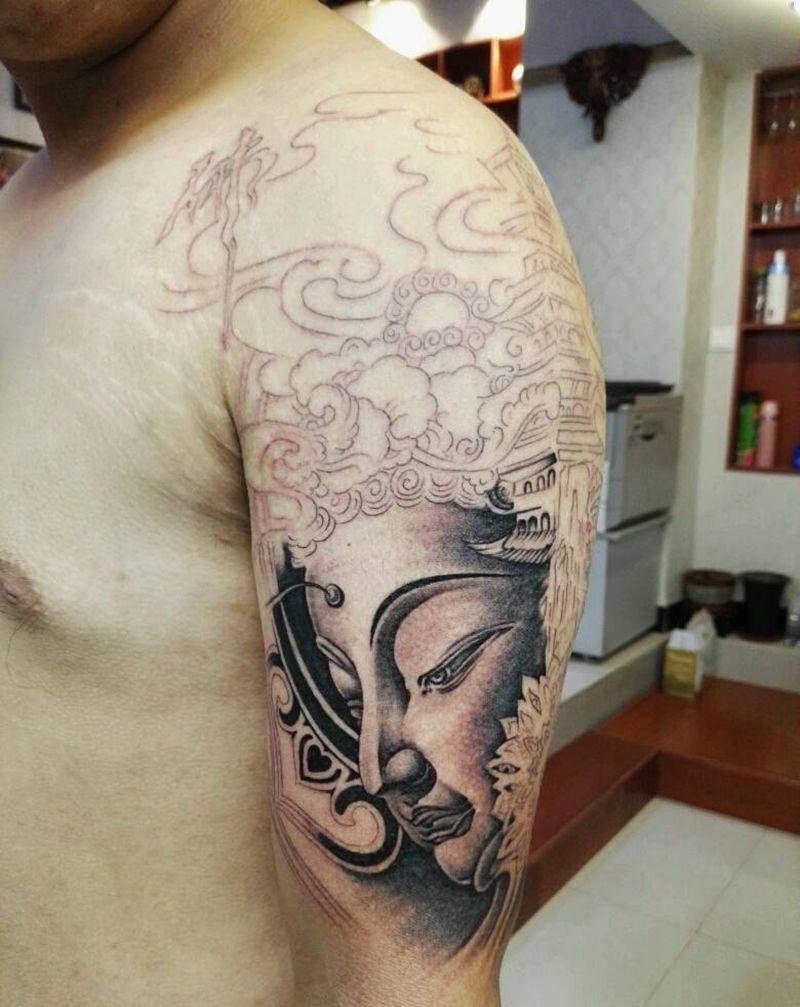当前位置: 首页 >江苏省南京市纹身店-南京谢志-刺青 Tattoo纹身图案>佛头纹身图片_手臂传统原创成品纹身图案