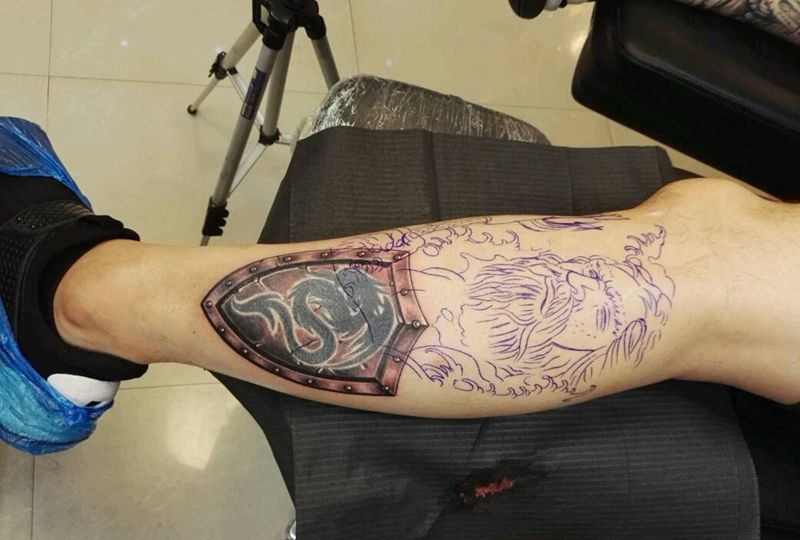 • T网红王老大花腿龙纹身图片_腿部新传统纹身图案
