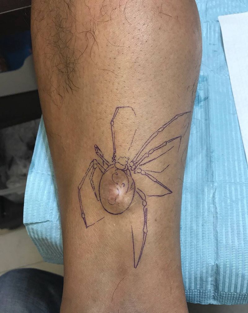 • T包小腿吹火男+阿多福纹身图片_腿部老传统新传统吹火男阿