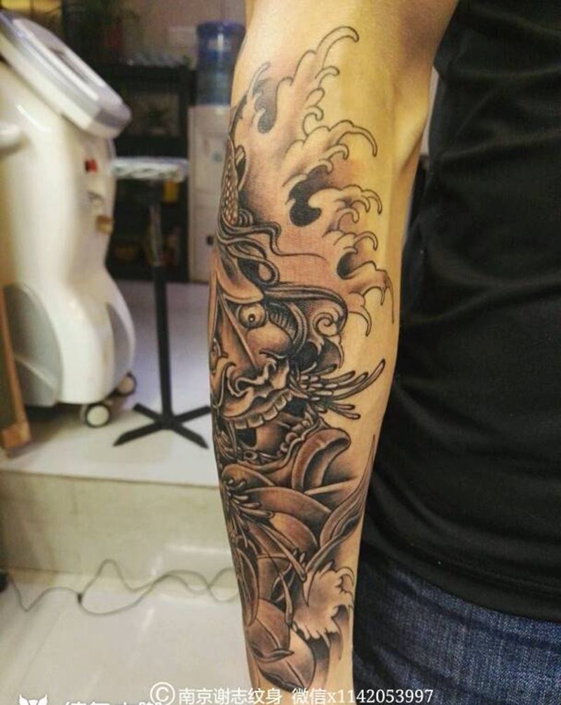当前位置: 首页 >江苏省南京市纹身店-南京谢志-刺青 Tattoo纹身图案>般若包臂纹身图片_手臂传统鬼神原创成品纹身图案