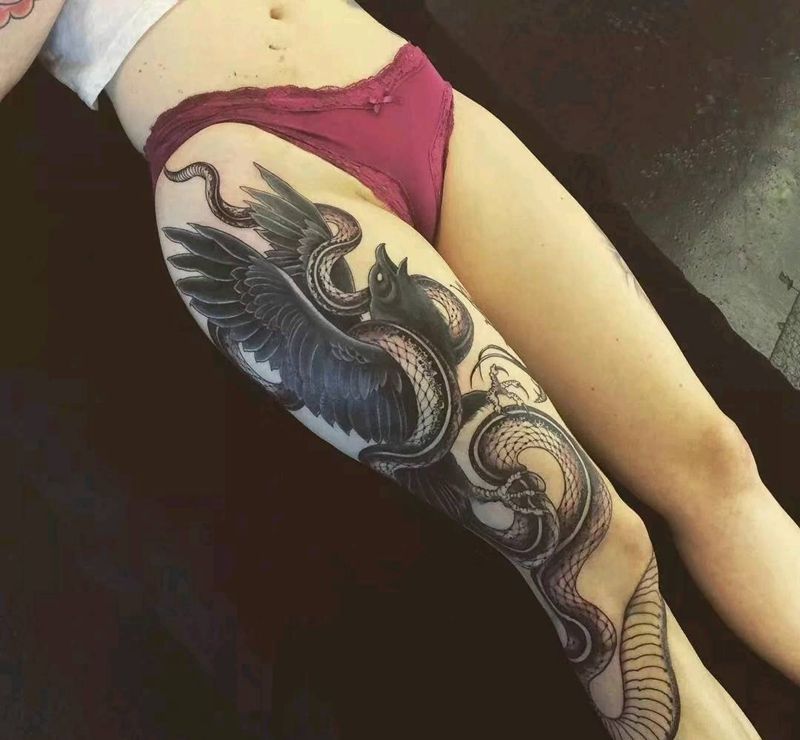 • T网红王老大花腿龙纹身图片_腿部新传统纹身图案
