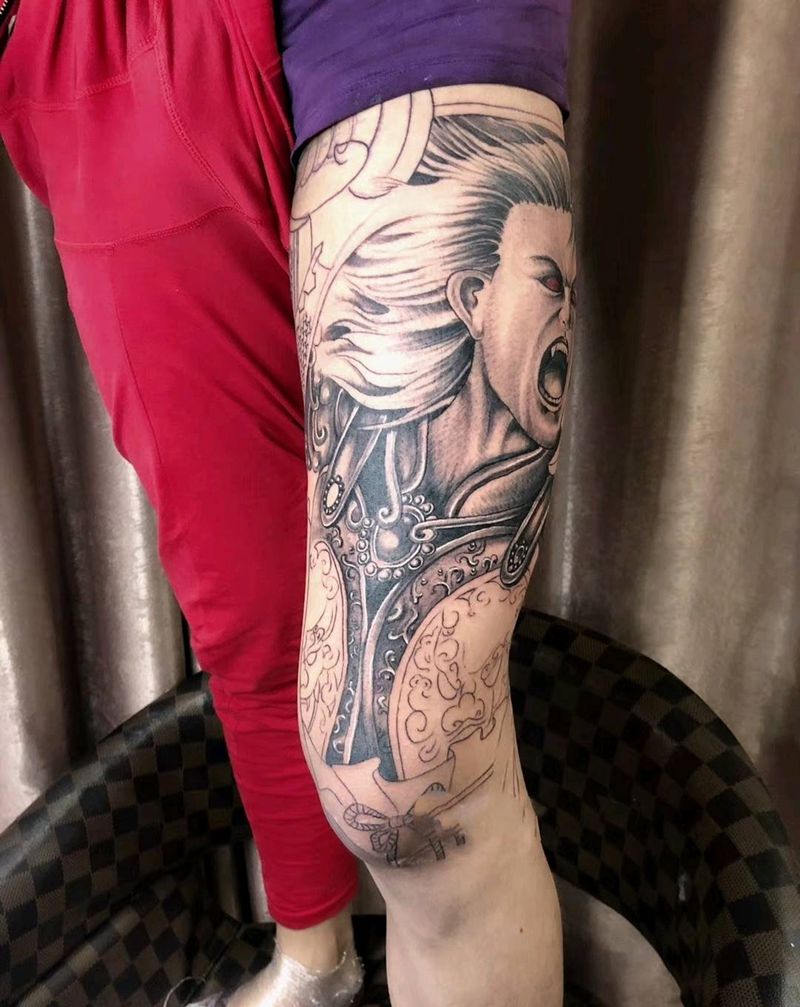 • T网红王老大花腿龙纹身图片_腿部新传统纹身图案