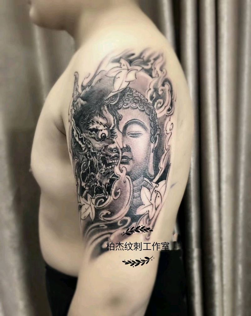 当前位置: 首页 >江苏省南京市纹身店-柏杰纹刺工作室纹身图案>善恶佛纹身图片