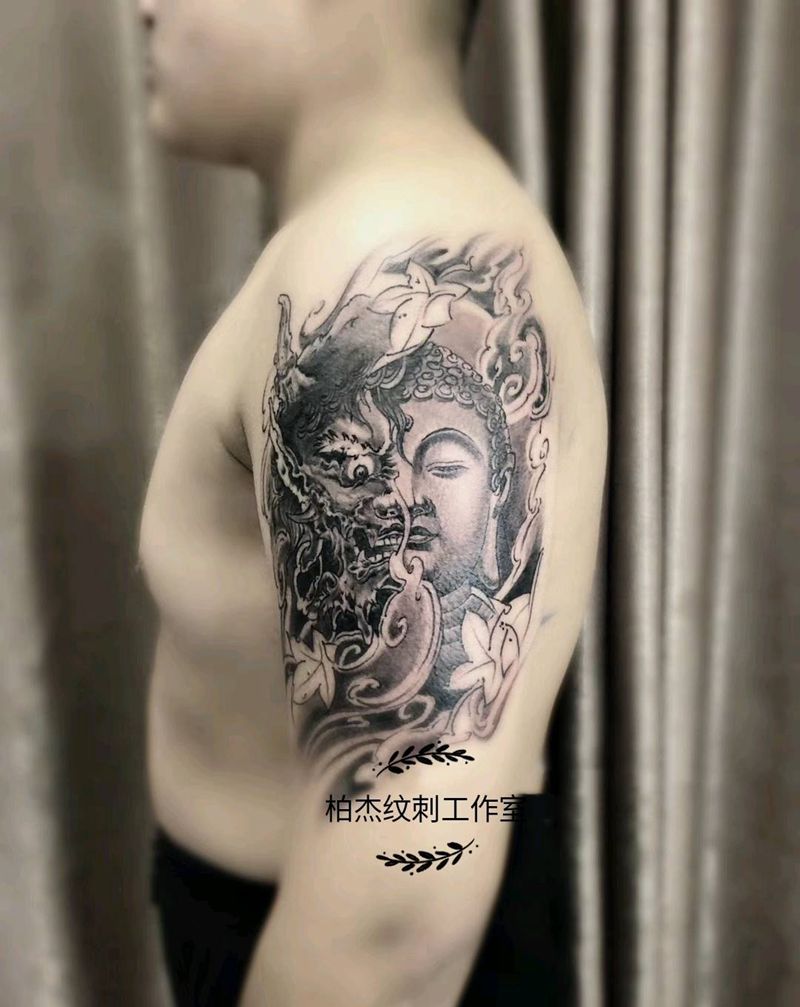 当前位置: 首页 >江苏省南京市纹身店-柏杰纹刺工作室纹身图案>善恶佛纹身图片