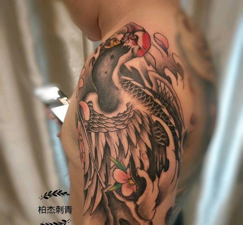 当前位置: 首页 >江苏省南京市纹身店-柏杰纹刺工作室纹身图案>仙鹤纹身图片