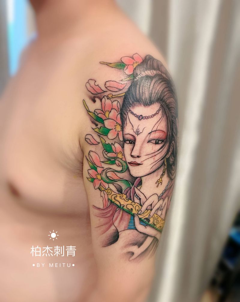 当前位置: 首页 >江苏省南京市纹身店-柏杰纹刺工作室纹身图案>大臂艺伎,彩色纹身图片_手臂新传统纹身图案