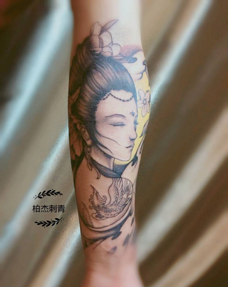 当前位置: 首页 >江苏省南京市纹身店-柏杰纹刺工作室纹身图案>小臂艺伎纹身图片_手臂新传统纹身图案