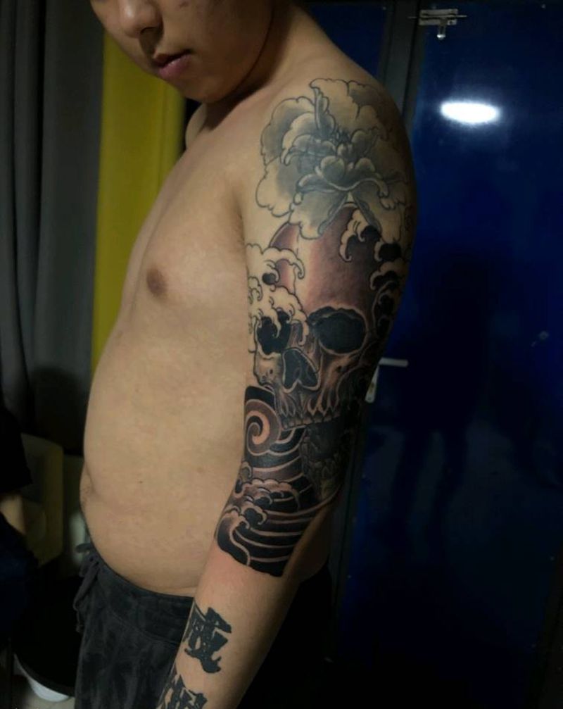 当前位置: 首页 >江苏省南京市纹身店-团藏刺青纹身图案>南京纹身-七分袖纹身图片_手臂新传统传统南京骷髅纹身图案