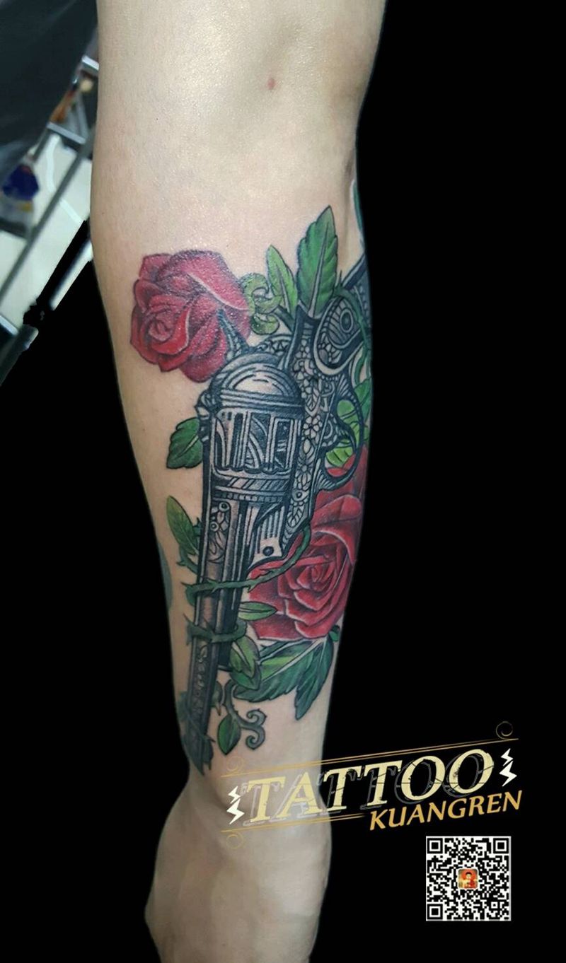 当前位置: 首页 >江苏省南京市纹身店-狂人刺青纹身机构纹身图案>枪在手、玫瑰在心纹身图片