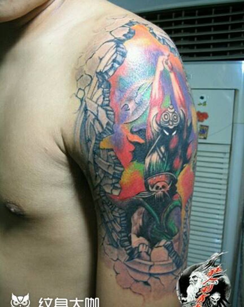 • 纹身吧推荐的披肩图腾半胛纹身图案作品展示