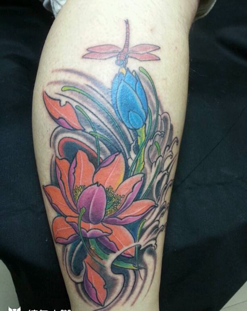 • T网红王老大花腿龙纹身图片_腿部新传统纹身图案