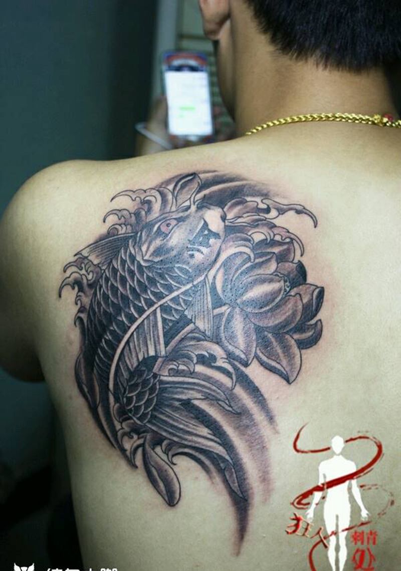 锦鲤类纹身图片_肩部腰部背部手臂腿部传统动物狂人刺青成品纹身图案