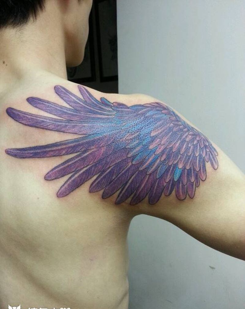 羽毛翅膀纹身图片_肩部手臂欧美狂人刺青成品纹身图案