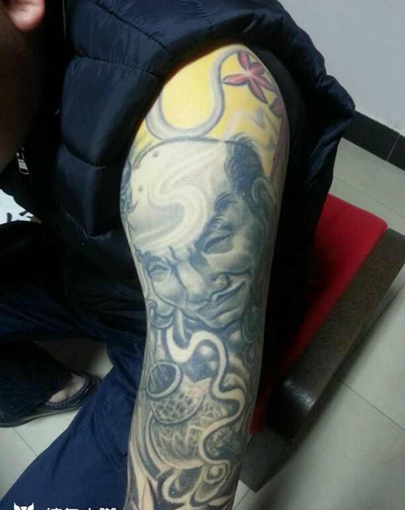 当前位置: 首页 >江苏省南京市纹身店-狂人刺青纹身机构纹身图案>佛教相关纹身图片_手臂传统人物鬼神原创狂人刺青成品纹身图案