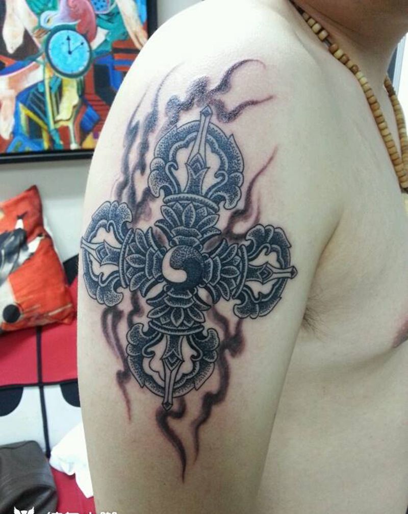 • 纹身吧推荐的披肩图腾半胛纹身图案作品展示