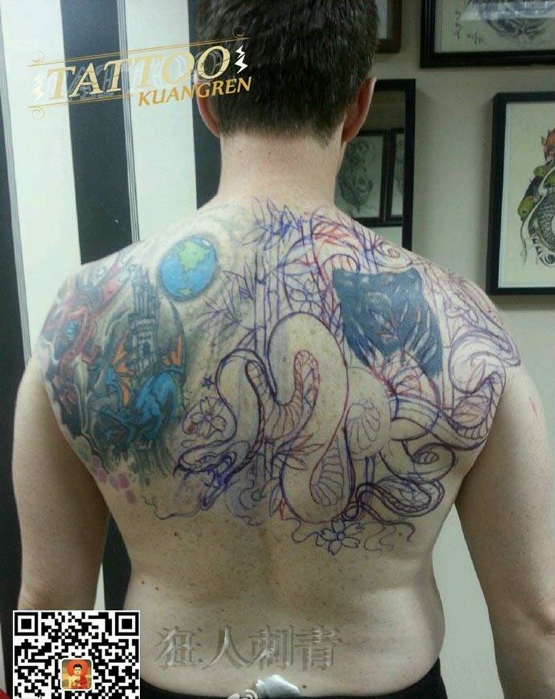 • 黑灰满背纹身图案