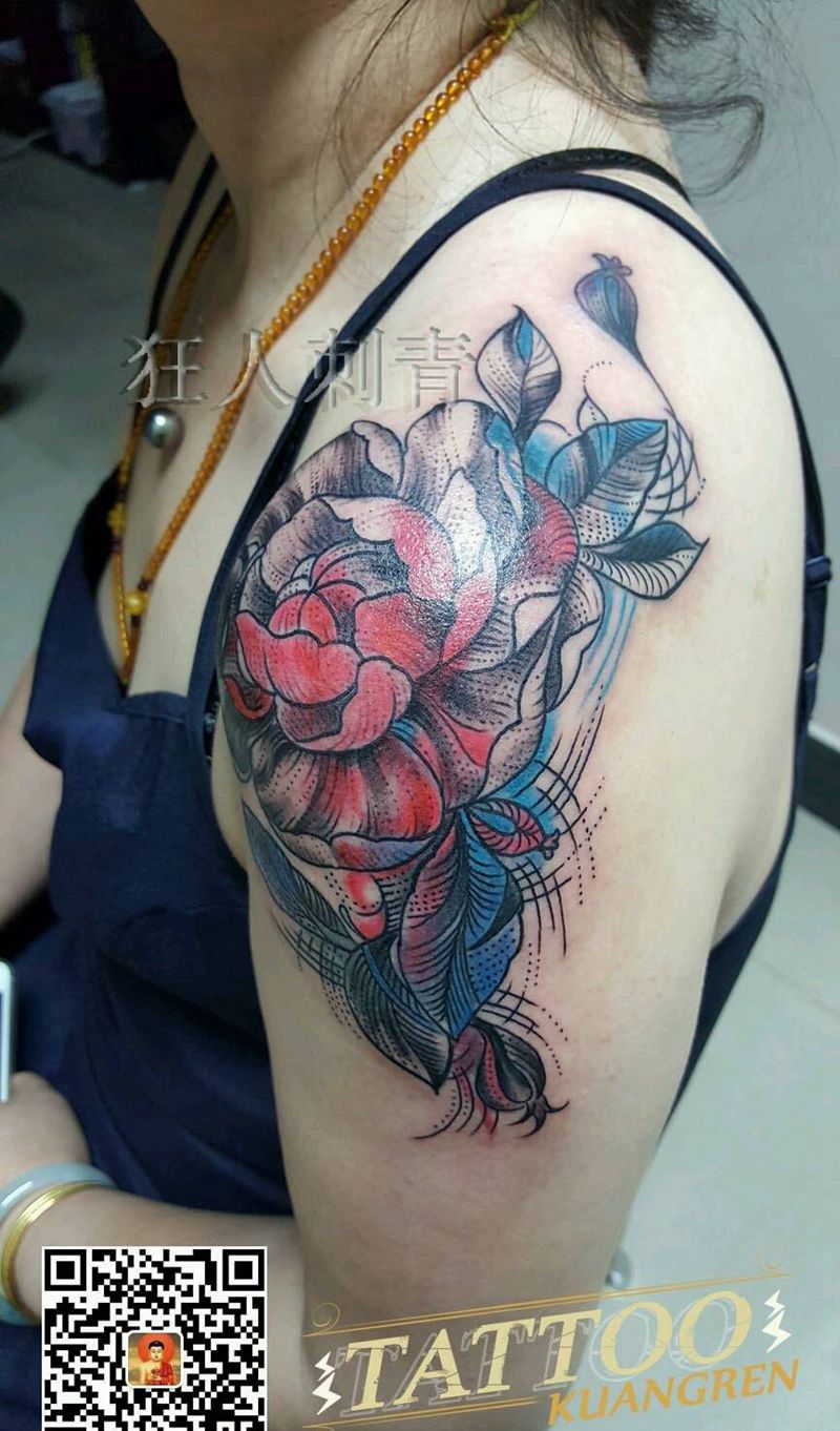• 女性大花胸纹身_43张霸气漂亮的女性大花胸纹身图案作品