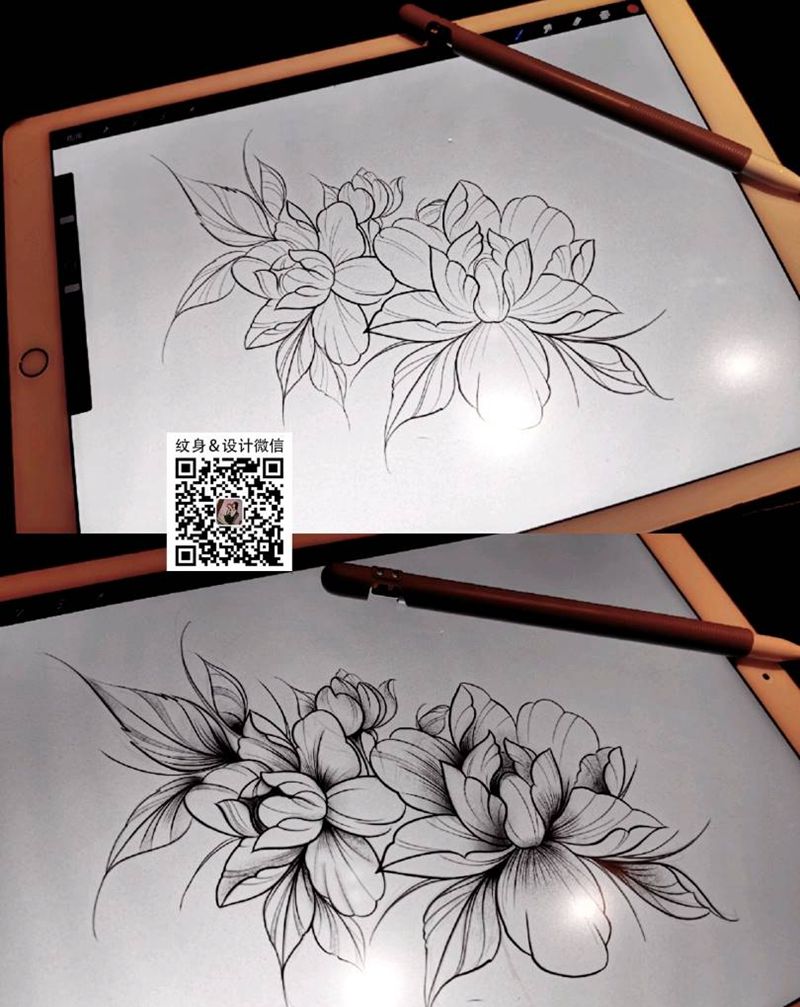 一组15张莲花纹身手