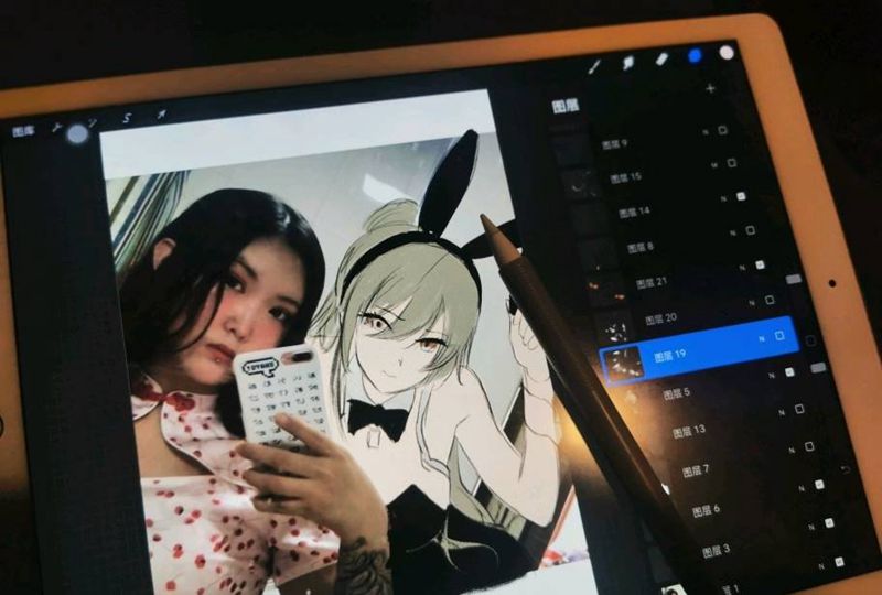 二次元兔女郎✔涂鸦手绘纹身图片_New School纹身图案