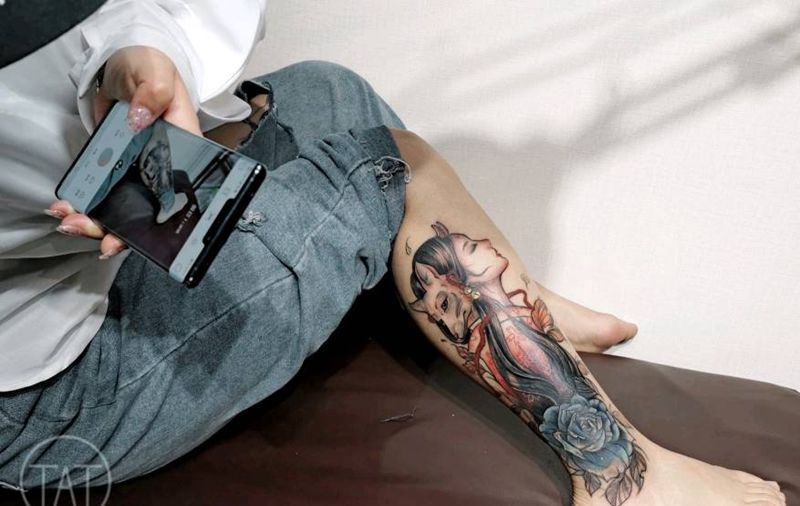 • T网红王老大花腿龙纹身图片_腿部新传统纹身图案