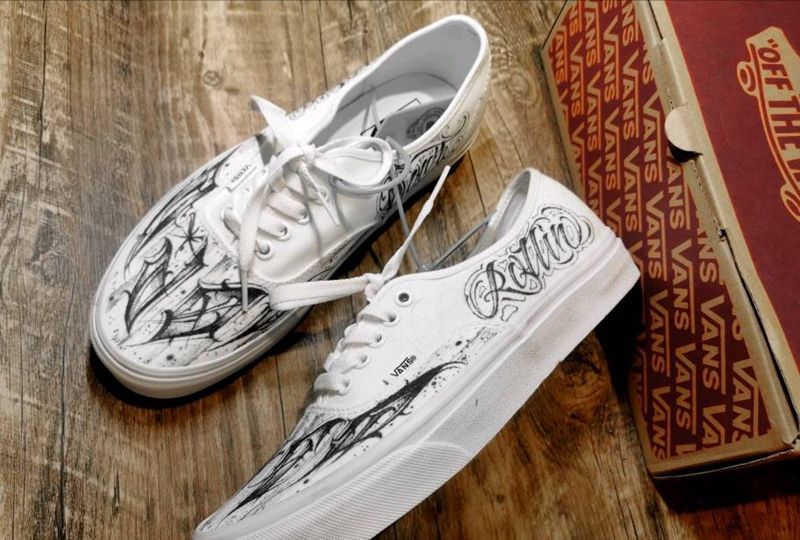 vans 手绘花体帆布鞋纹身图片_花体字纹身图案