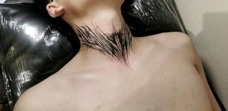 暗黑爆脖纹身图片_花体字纹身图案